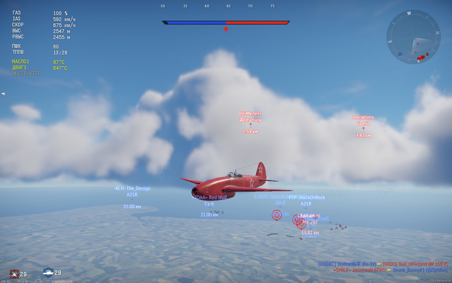 даже условная Ла-5ФН хотя бы 1 фраг да может дать, а Як-15П даже 1 фраг сделать неспособен, потому что просто никого не может догнать