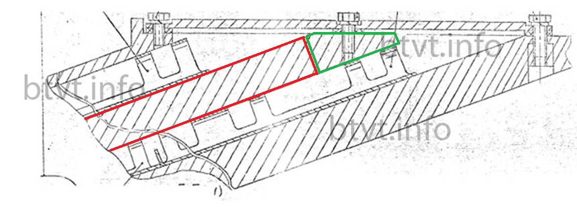 Зеленым помечено изменение модуля. Буквально одна закладная под 2 болта. Красным - наборные пластины.