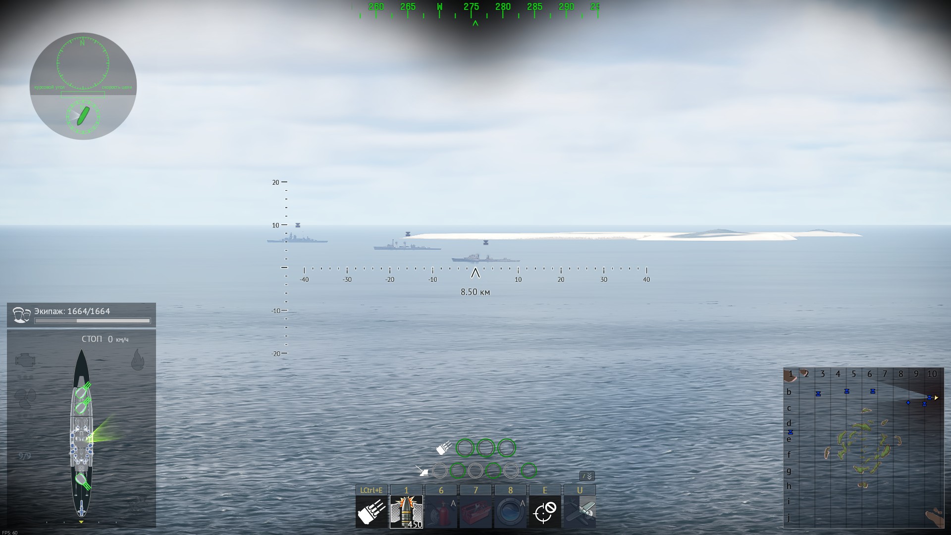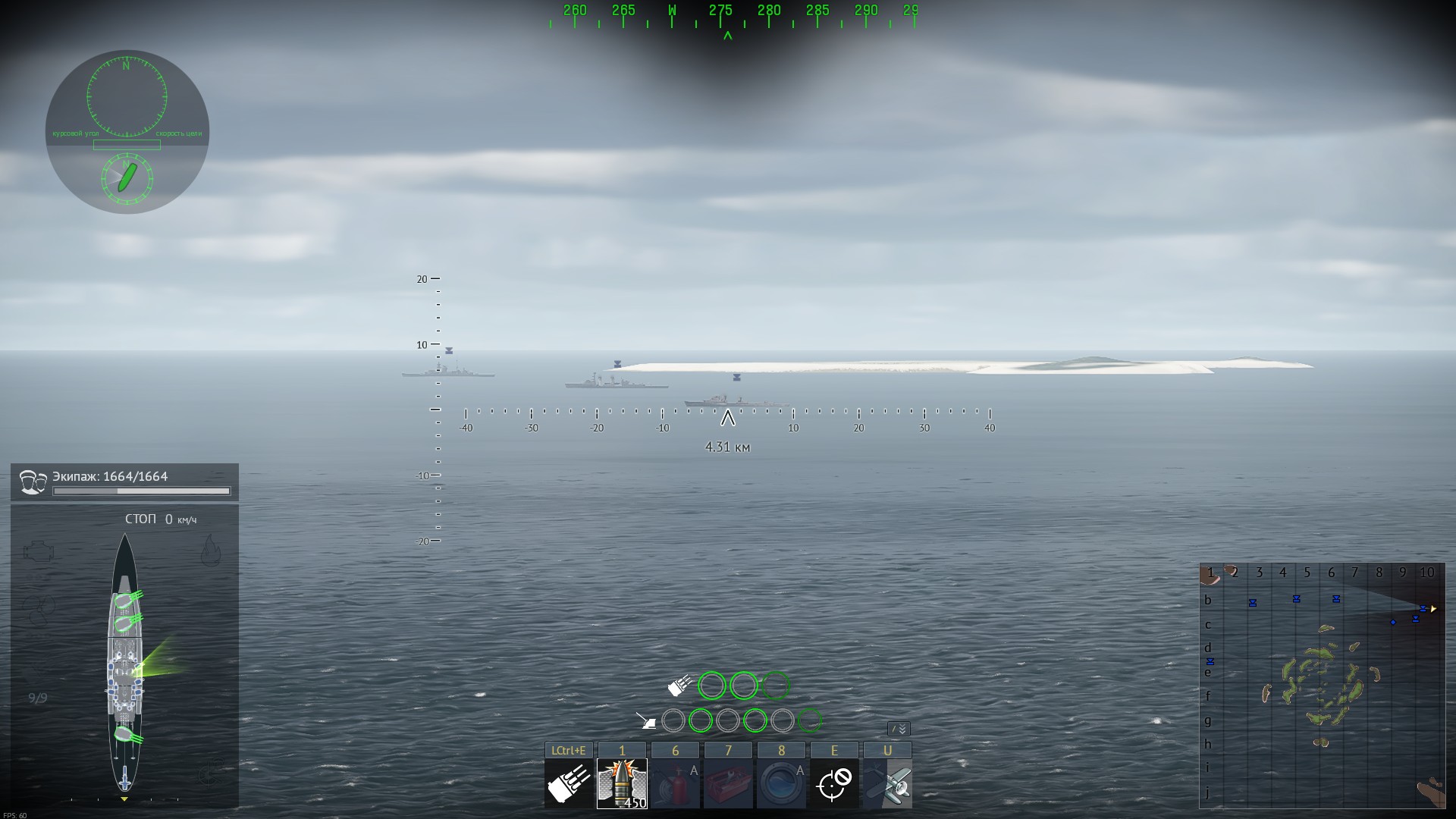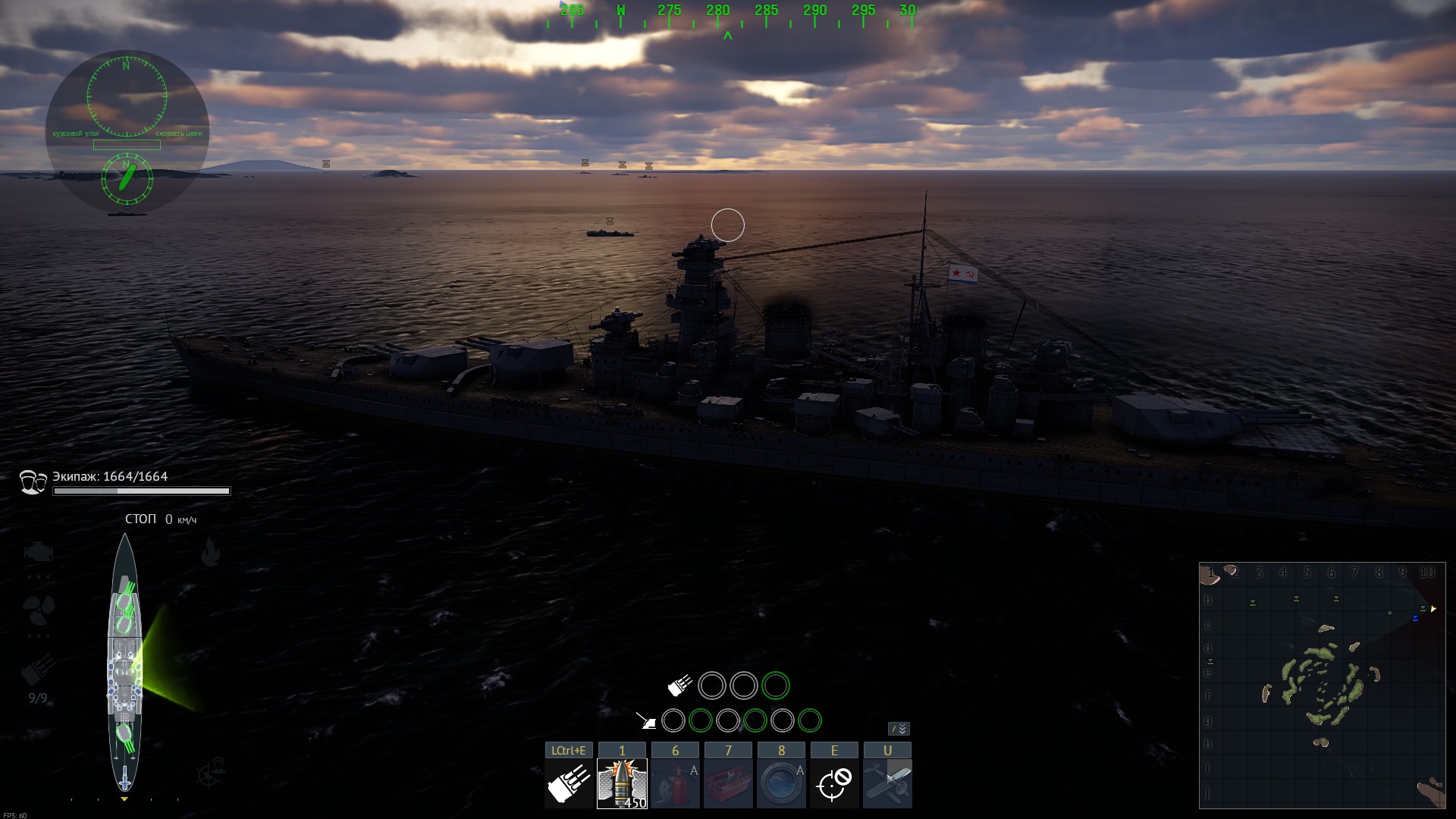 - Присуствует пересвечивание картинки и добавление дымки в виде от 1 лица(который не зависит ни от погоды ни времени суток и ничем не оправдан). Зачем добавлен этот эффект не понятно, портит картинку делая и без того нечеткие силуэты кораблей на дальних расстояниях вообще нечитаемыми, а картинку еще более блеклой, скрывая от игрока как детализацию модели кораблей(превращая их просто в однотонные пятна над водной гладью) так и окружение локации. Постоянно наблюдать такую картину не доставляет удовольствия. Нужно убирать этот эффект в виде от 1 лица, который портит впечатление и не дает наслаждаться той картинкой которую вы нам в этой статье показываете на скриншотах из вида от 3 лица, игрок этого не наблюдает в боях из-за этого фильтра накладываемого в виде которым игроки пользуются большую часть времени в бою.