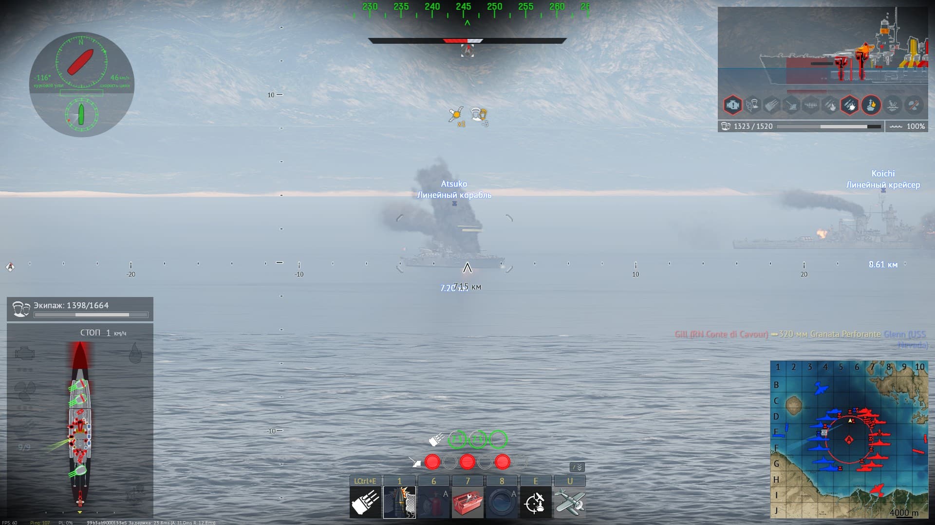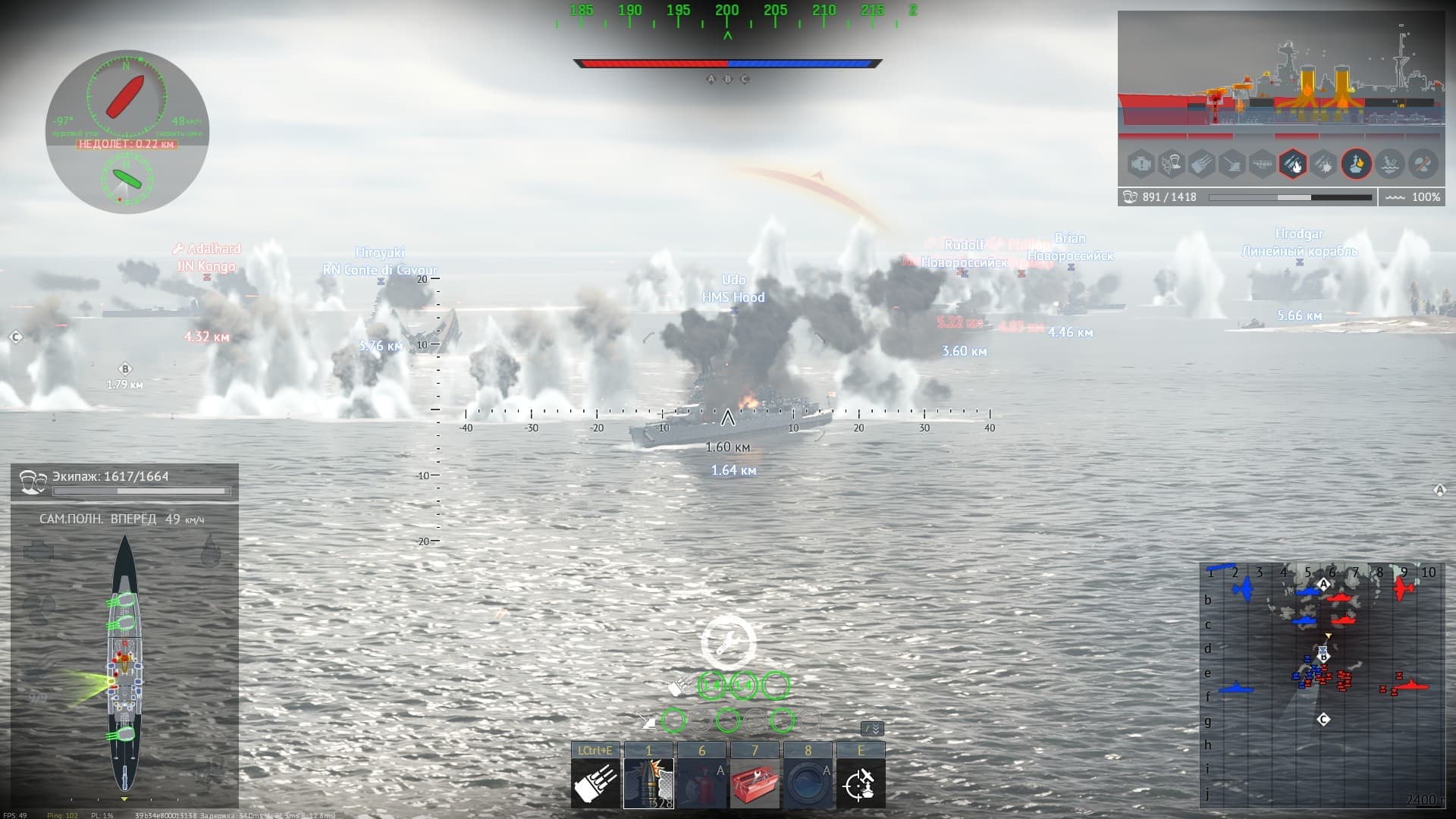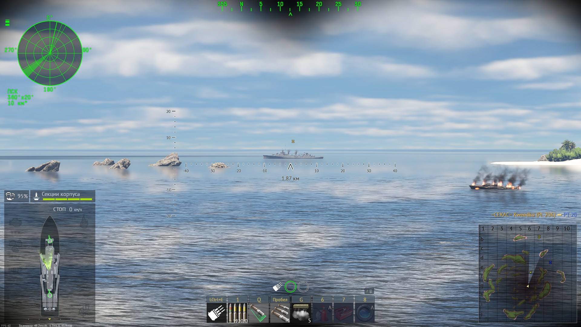 И немного про воду, это замечательно что вода “симулируется на сервере” только когда корабли в игре создают волну своим движением, а она никак не взаимодействует с остальными кораблями вокруг и корабли при столкновения слипаются и тащат друг друга по несколько километров не расцепляясь вместо того чтоб оттолкнуться и разойтись, не очень то и верится в реалистичность симуляции воды, как бы симпатично она не выглядела. Аналогично со взрывами в воде у нас и волны расходятся и столб воды вылетает, только на соседний корабль это никак не влияет.