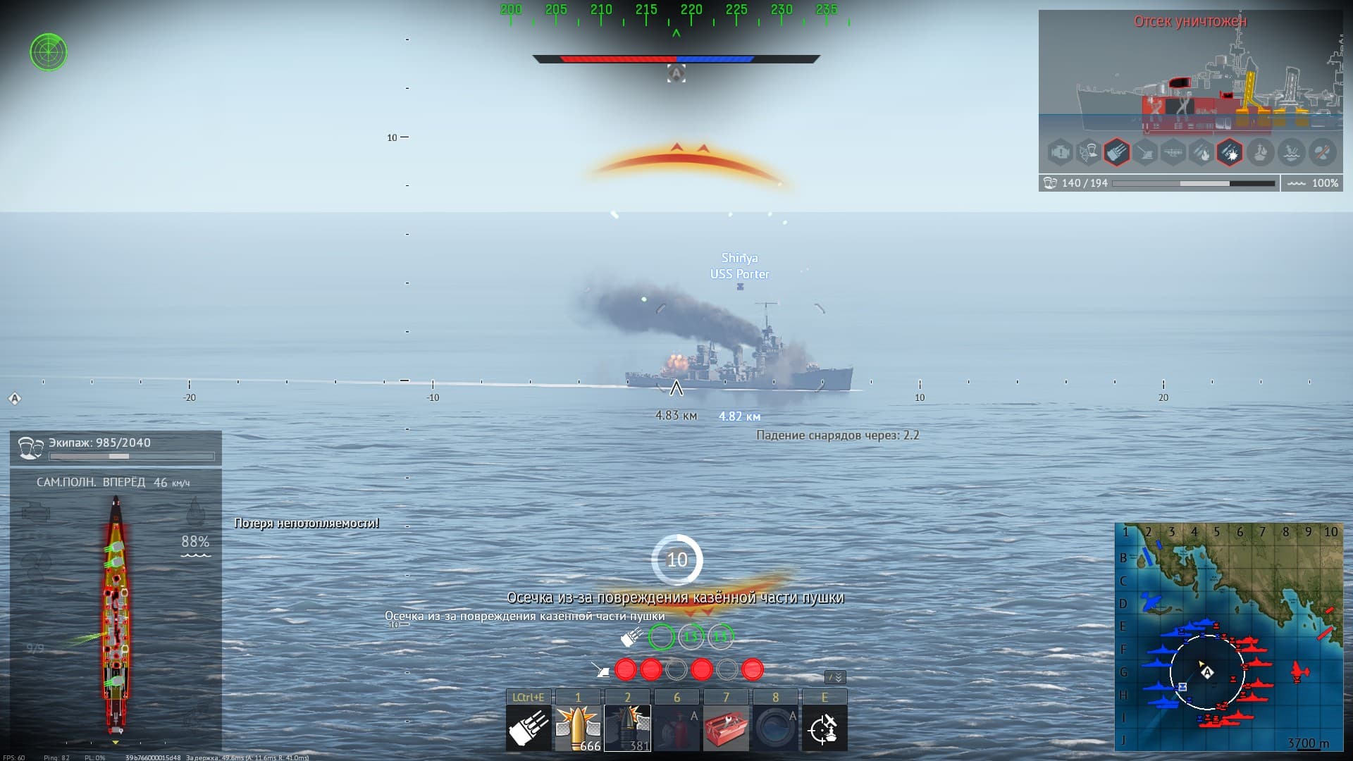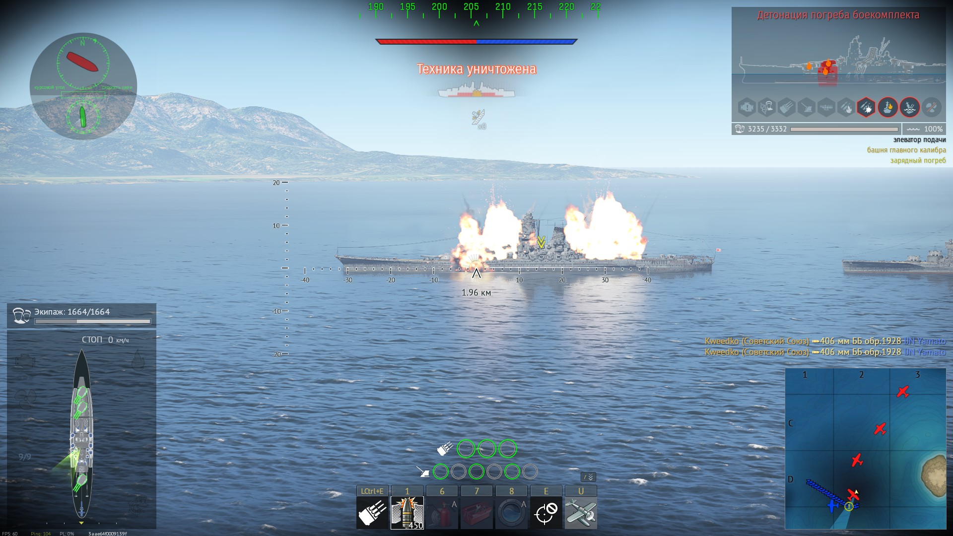 пс. Со взрывами есть проблема когда проигрывается анимация подрыва боекомплекта на тех погребах где подрыва не произошло(бк рванул под 2 башней, а анимация проигралась под кормовой), как на скрине, неплохо было бы это исправить чтоб не вводить в заблуждение игрока.