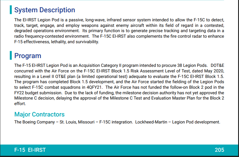 А почему F_15E и F-15C не получили IRST POD? ОЛС контейнер а не некоторых он вообще был встроен.