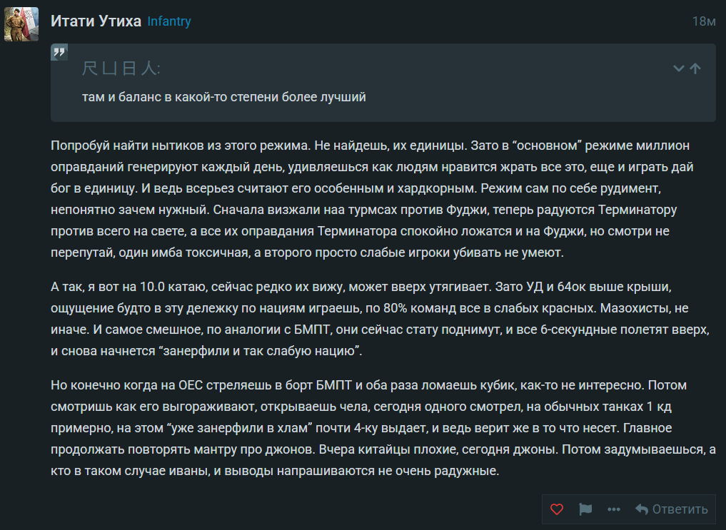 Даже у меня уже нервы, что очевидно было по вчерашнему дню, сдавать стали. Просто дичь, что не бой. Дамаг модель поправили хотя бы.