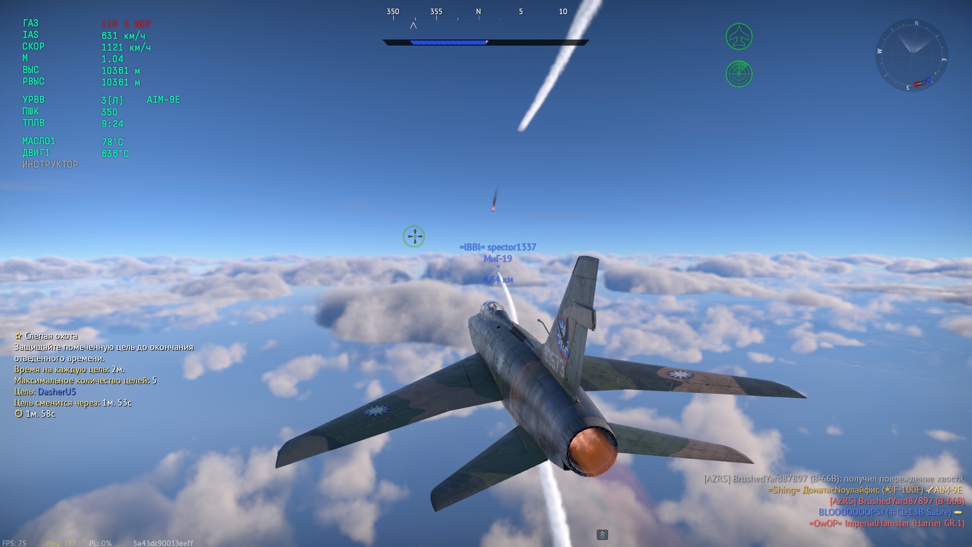 дистанция в момент пуска была более 7 км. Пожалуй, это личный мой рекорд с ИК-ракет по дальности. Приятно, что ракета догнала цель быстрее, чем союзный Миг-19, который в момент пуска был на 4 км ближе к цели