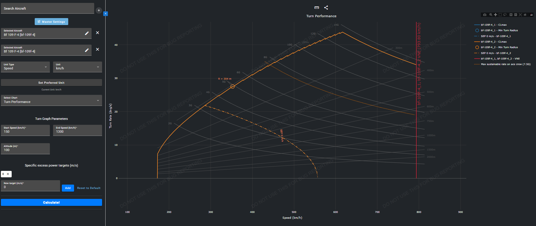 Ну понятно, погрешности могут быть, но вот то что на графиках отражено - очень похоже на реальное положение. Можно потестить: На ПУ Фридриху CAOA прожать, без фанатизма, где-то на 80% примерно как у Як-3 и он должен перекручивать Яка. Любопытно, что Яку ПУ не сильно бустит устоявшийся - ему уменьшение скорости меньше 312 кмч - уже ухудшает вираж.