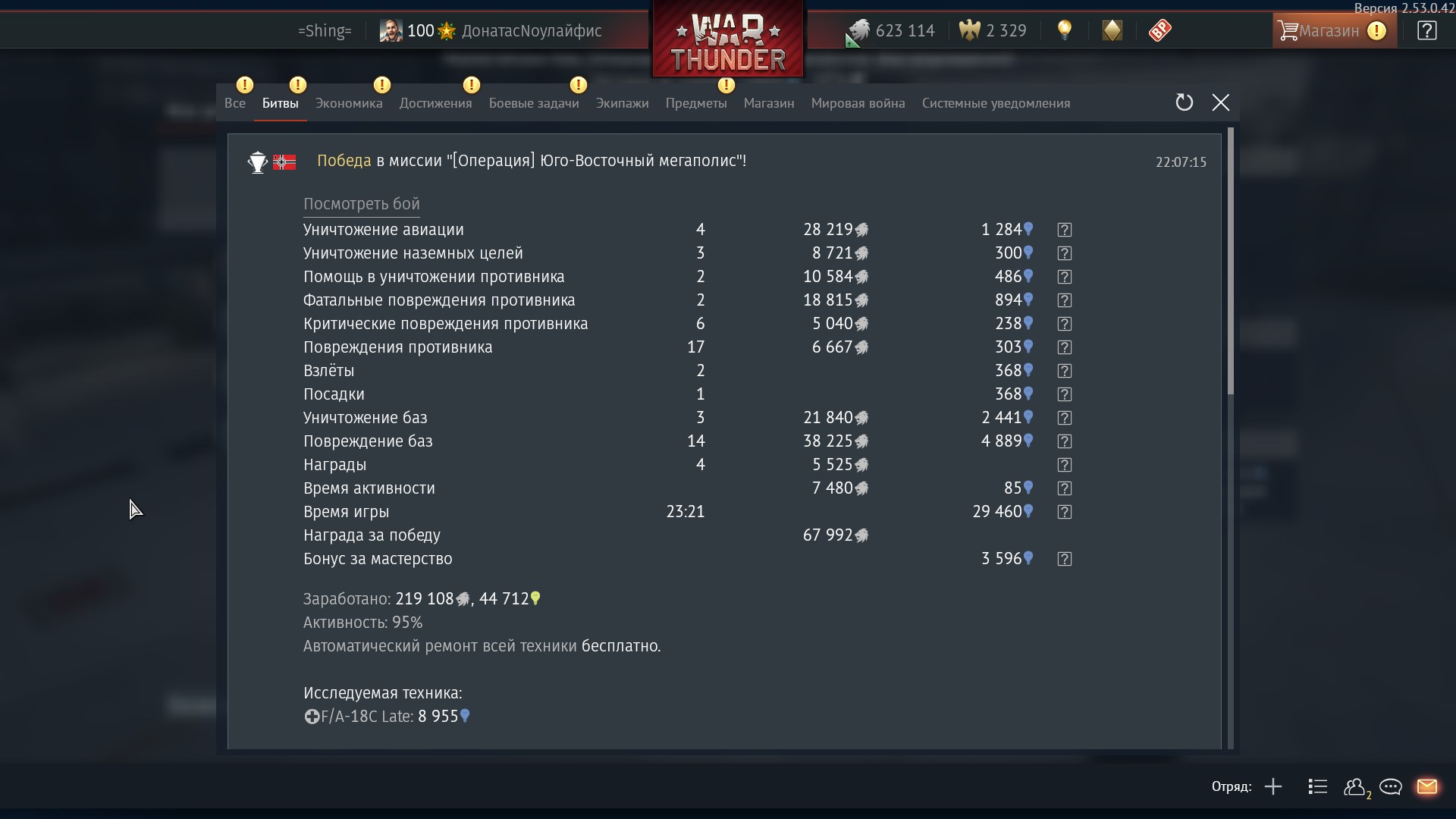И доход отличный, 3 сбитых и победа - 55 тысяч на линейной технике. Новая экономика радует каждый бой