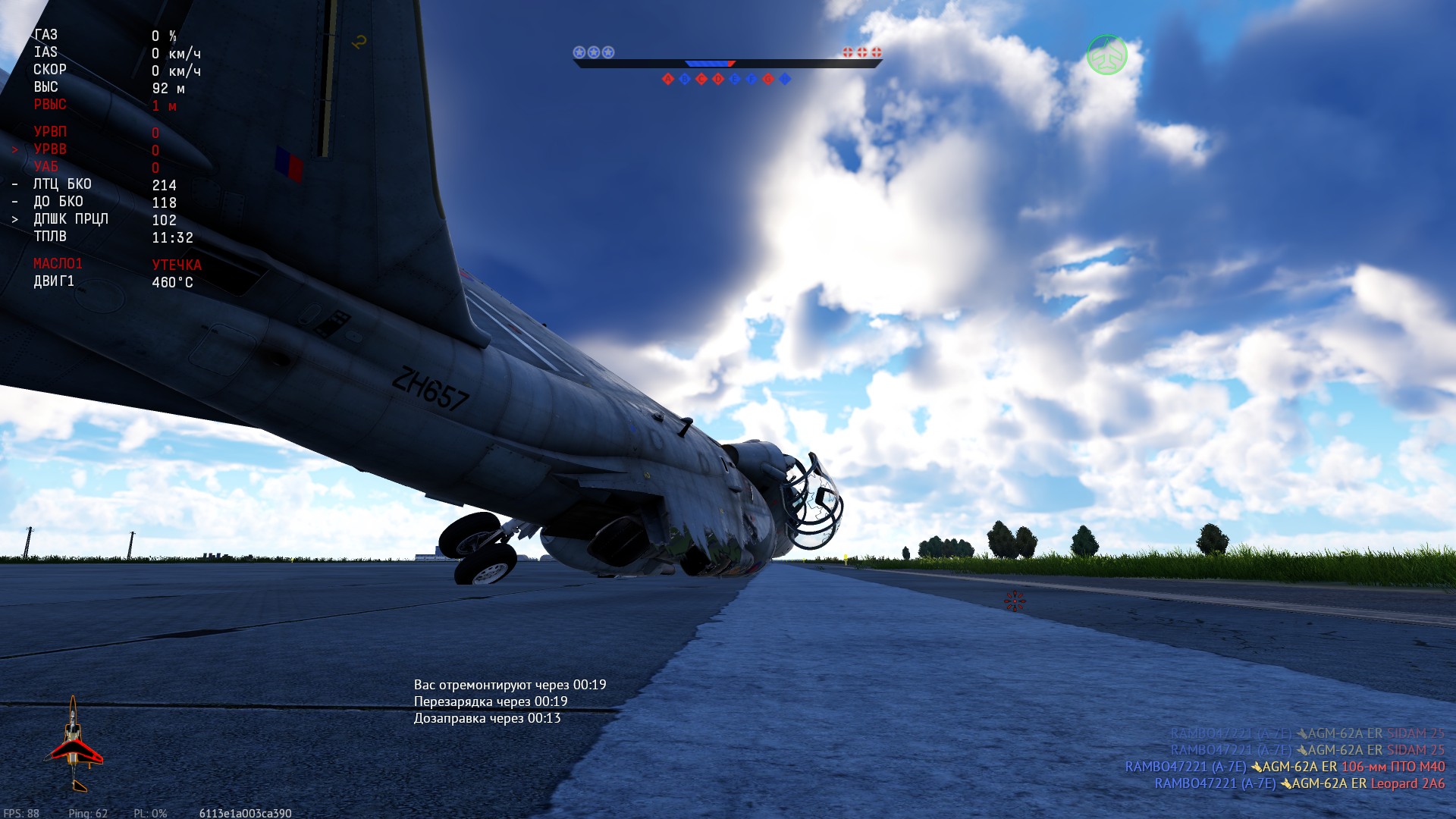 Вообще странно, почему таймеры ремонта и перезарядки тикают одинаково (причем независимо от состояния самолета), а дозаправки по каким-то отдельным законам.