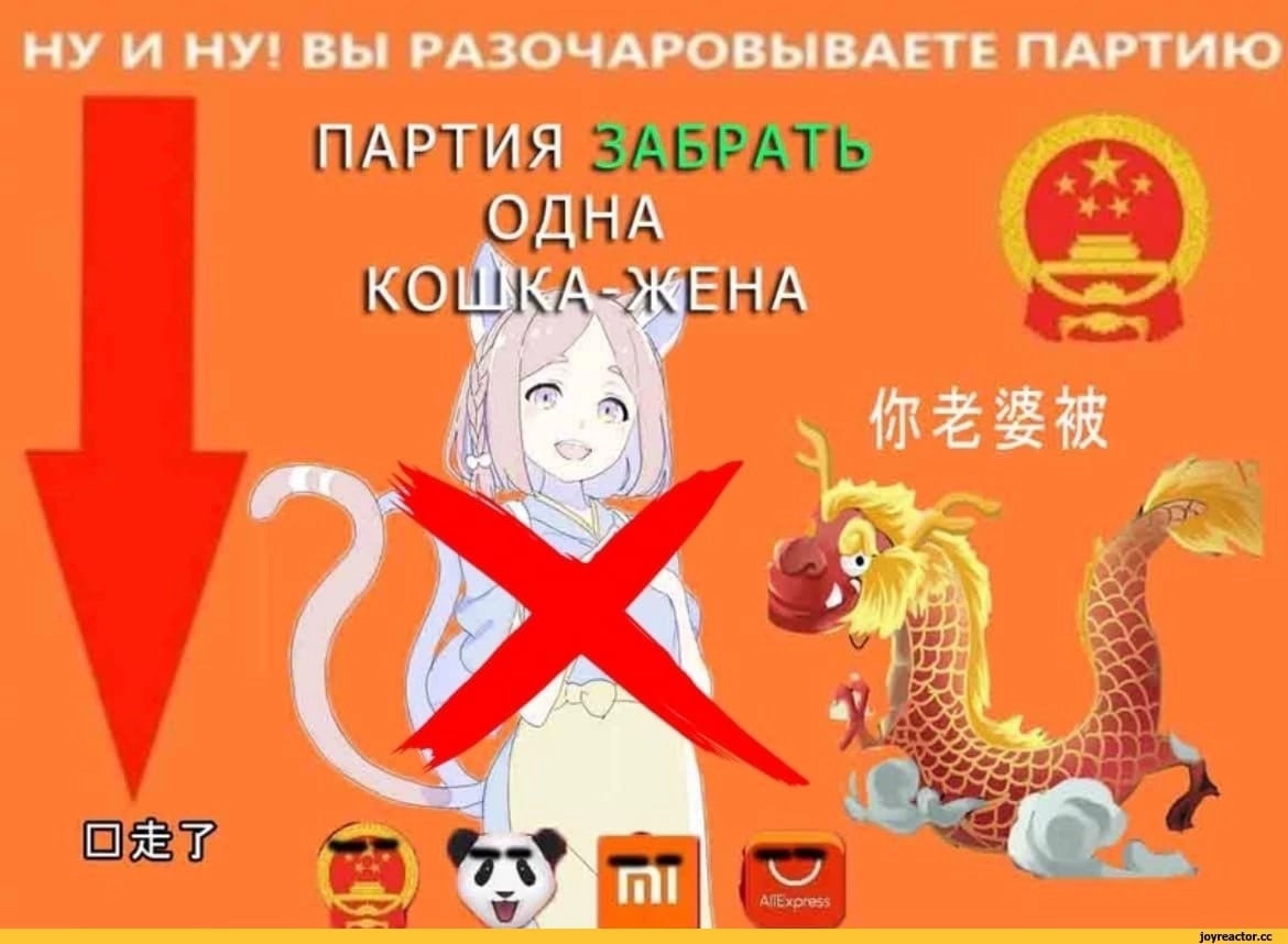 Погоди, ща придет Батончик, влепит тебе -9999 сошиал кредита и конфискует миску риса и кошкожену, за дискредитацию партии
