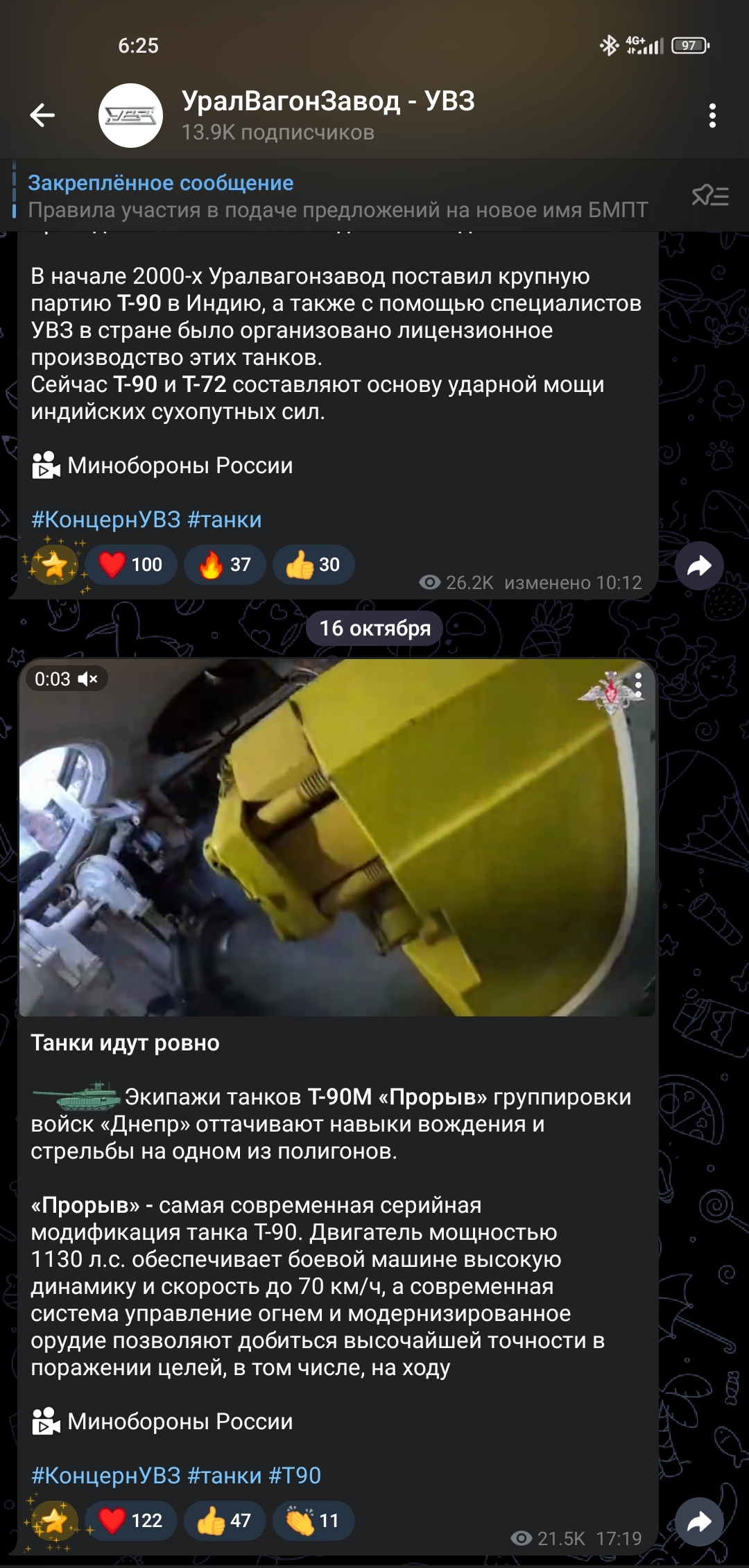 P.S. - я уже скидывал информацию от пресс службы УВЗ по максимальной скорости Т-90М, но это увы не учитывается.