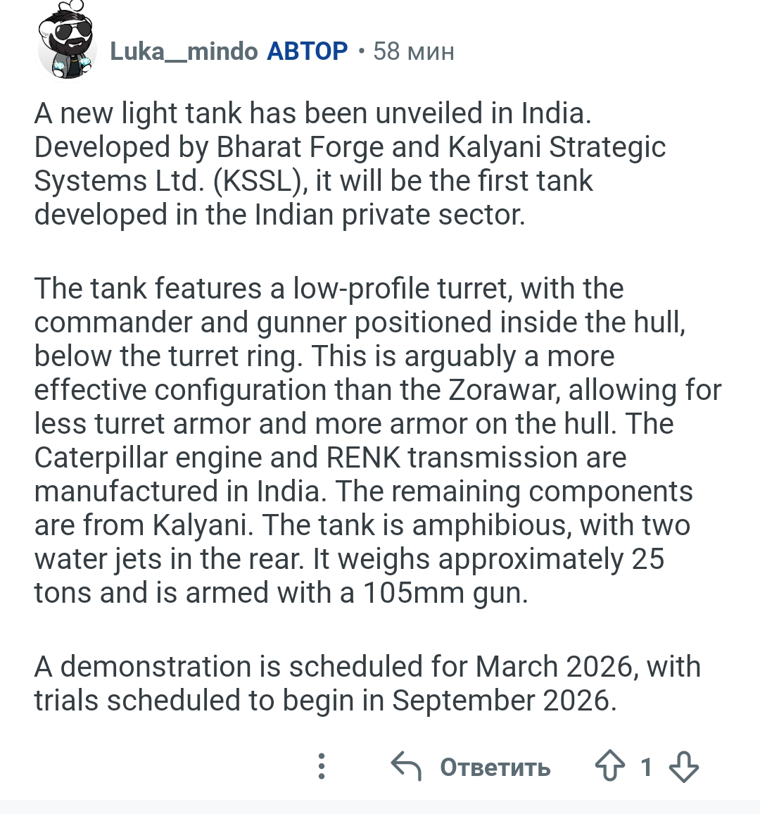 Индия хочет выпустить ещё один Лёгкий танк.
