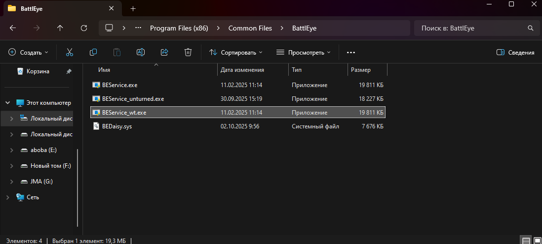проблему решил сам , в корневой папке \Program Files (x86)\Common Files\BattlEye (обычно где стоит винда) был включен “скрытый атрибут” BEService_wt.exe