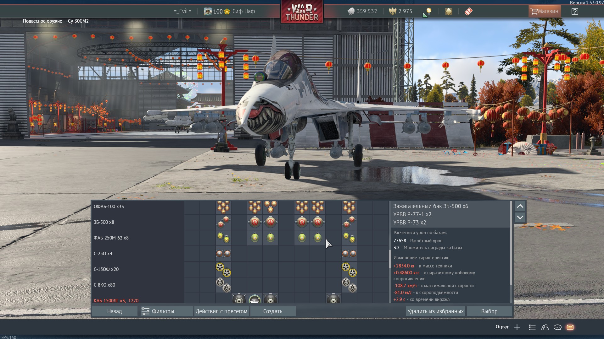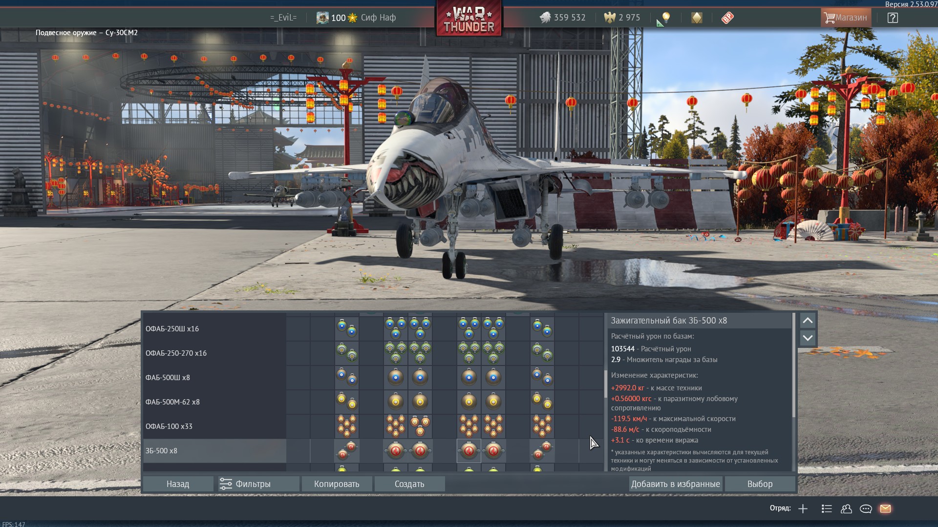 Добрый день. Почему у шведского самолета A32A - Rod Adam, в редакторе подвесного вооружения, при составлении в кол-ве 3х 500 кг бомб 2 х бл оков дипольных отражателей, превышается допустимая масса? Притом, что в стандартном подвесном есть точно такой же состав?