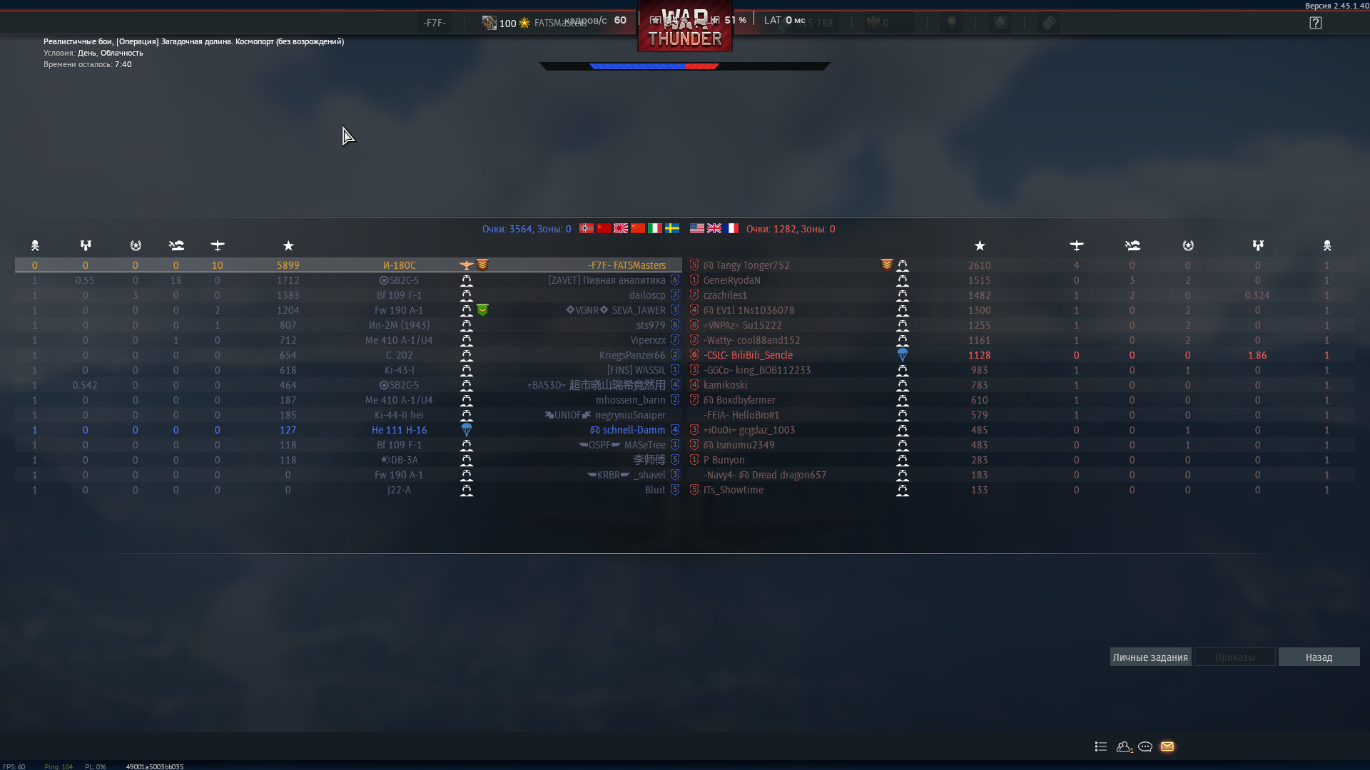 Я девятку не принес, ибо думал быстро перебьют, а сам я на нем летать не хочу больше