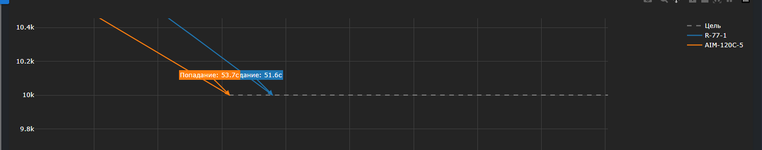 Хочу кое-что поправить. Да, в плане дальности по карточкам эти ракеты идентичны, но ты упускаешь один важный момент, те же 120с-5 более энерговооруженные чем р-77-1. И то что у них стоит одинаковая дальность, это еще ничего не значит. Р-77-1 по факту хуже летят в даль т.к. они почти на 80 кг тяжелее и на 0.4 маха медленней. Это может показаться мелочью, но это сильно влияет на сохранение ракетой энергии. Время работы их двигателей пускай и одинаково, но 120с-5 быстрее набирает свою максималку и дольше сохранят скорость, по этому, если выпустить р-77-1 и 120с-5 с одинакового расстояния, на одной высоте и скорости, то 120с-5 быстрее попадет в цель и на большую дальность.